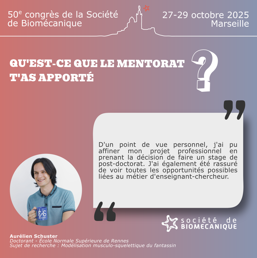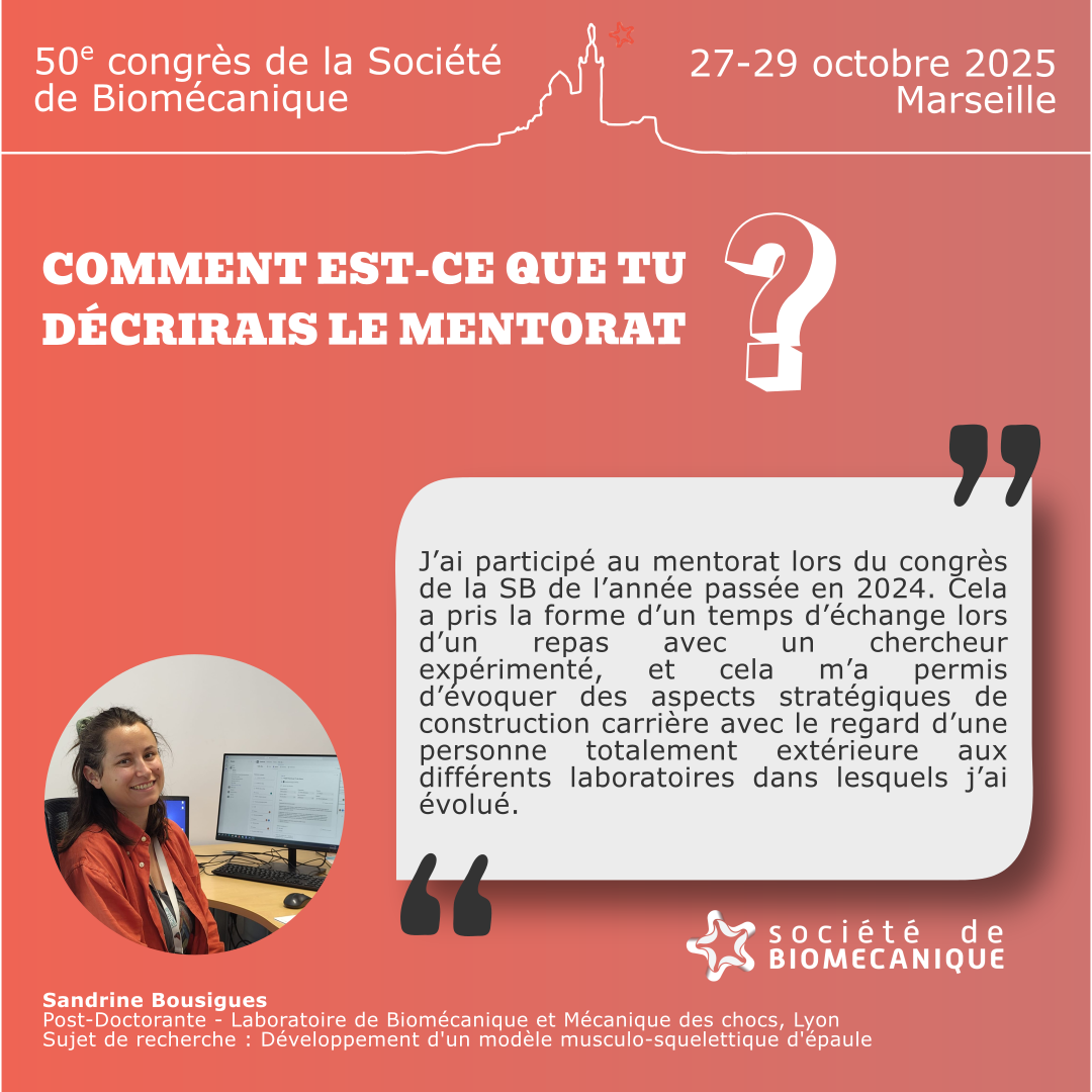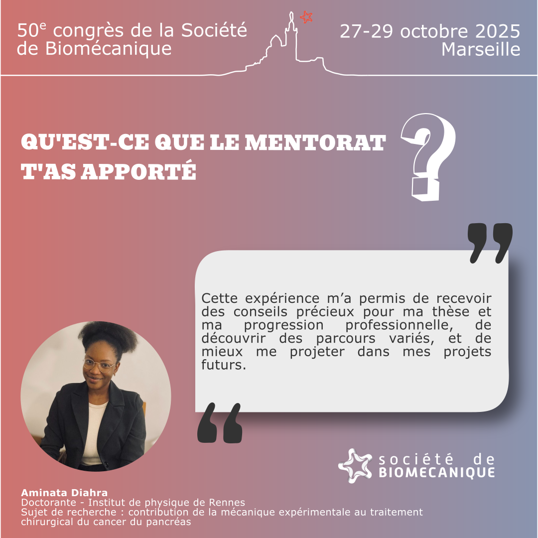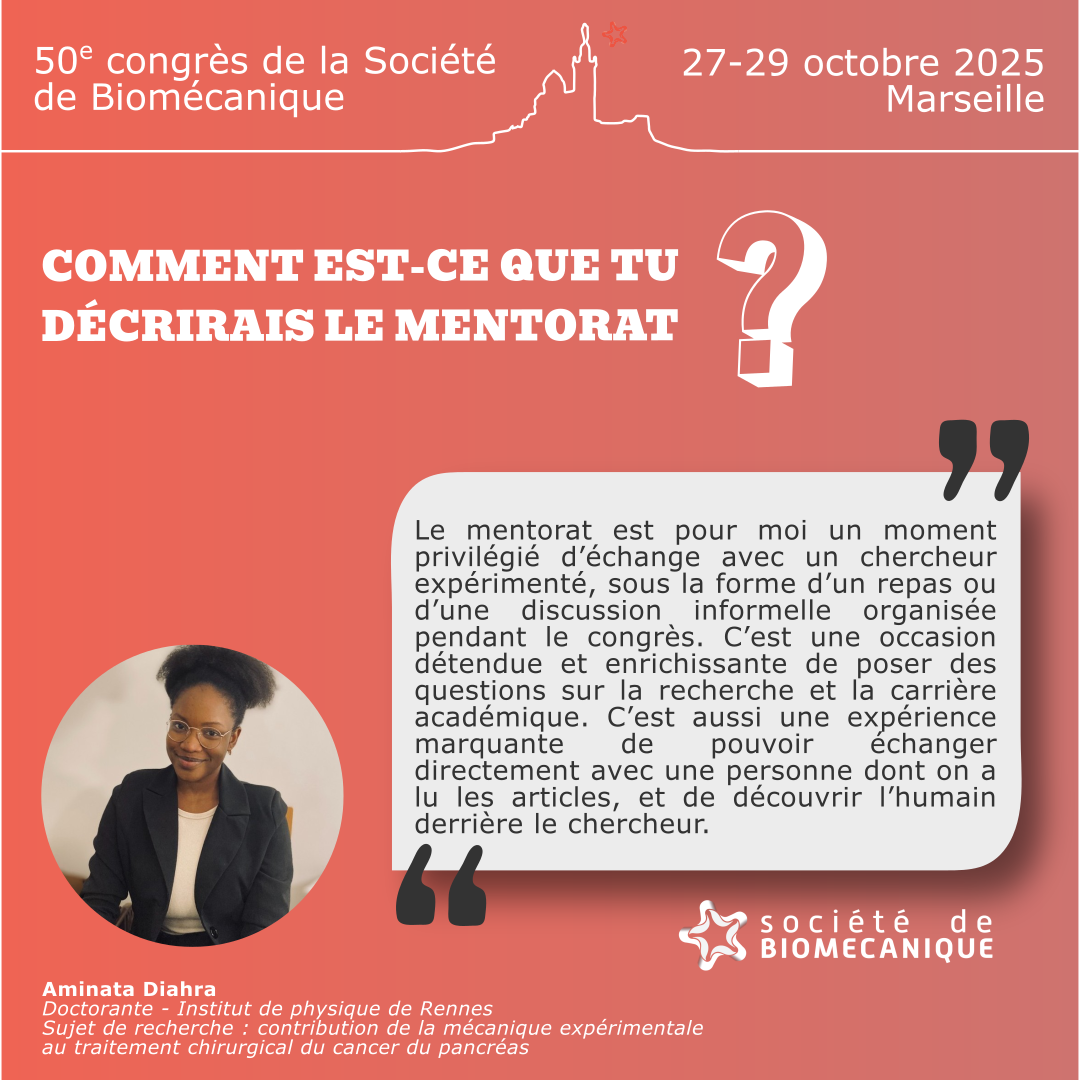 La Société de Biomécanique a mis en place un programme de mentorat à destination des membres de la Société de Biomécanique participant à la conférence annuelle de la société.